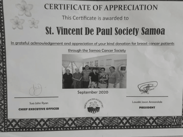 Pauline hands over "knitted knockers" to Oncology Ward, Suva Hospital